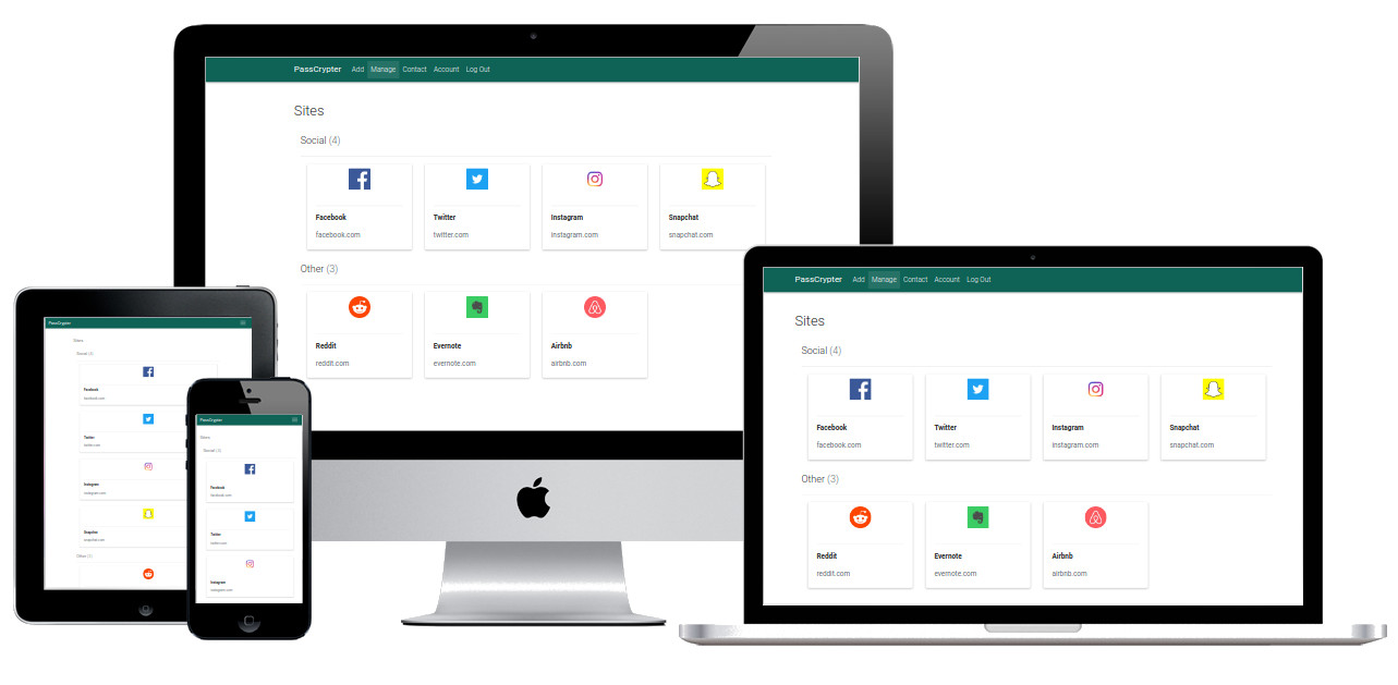 PassCrypter uses AES-GCM encryption with salted PBKDF2 SHA256 hashes to ensure your data is stored securely on the server. All you have to do is choose a strong master password and PassCrypter will handle the encryption and decryption.